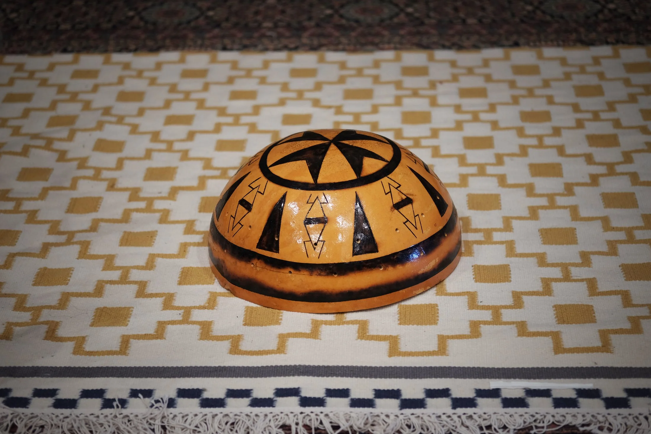 A smaller pyrographed instrument, with a dry and tight bass and a very powerful finger tap sound. Hand-made in Burkina Faso. Diameter: 37cm